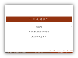 第二场报告由陆亚明副教授带来,报告题目为“什么是实数?”。陆老师以同学们非常熟悉的实数为题,通过讲解从整数扩张到实数的过程,为同学们揭示了实数这个看似简单的概念背后所蕴含的不简单的数学知识。