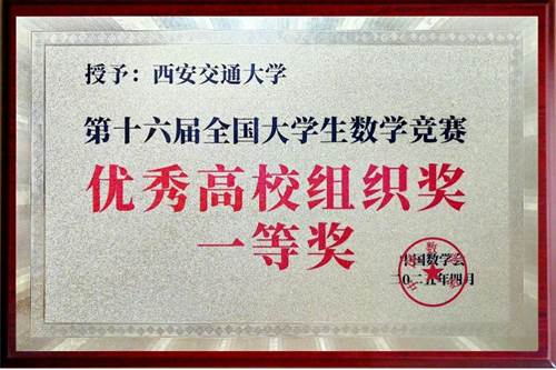 417日,第十六届全国大学生数学竞赛决赛获奖名单正式公布。西安交通大学学子斩获全国一等奖8项、二等奖6项、三等奖7项,一等奖获奖数与总获奖数均居全国高校第七位。学校荣获优秀组织奖一等奖。能动A2102班王奕博在非数学专业A类决赛中获满分。