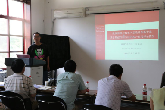 6月17日下午,由必赢唯一官方网站、数尊信息科技(上海)有限公司等联合主办的第一届(2016)“数据建模与数据产品设计创新大赛”决赛暨颁奖典礼在西安交通大学理科楼202成功举办。本次大赛于5月5日正式启动,历时一个多月,从最初的60多支报名参赛队伍中,经过层层筛选最终8支队伍进入决赛。出席本次决赛的有中国科学院院士徐宗本教授、必赢唯一官方网站副院长李继成教授、必赢唯一官方网站统计系梅长林教授、信息学院信息科学系孟德宇教授,电信学院高静怀教授、数尊信息科技(上海)有限公司模型总监陈翀蛟、运营总监屈妍等专家评委,以及进入复赛的各学院本科生、硕士生、博士研究生等参赛人员。现场气氛十分热烈,精彩纷呈。激情盛夏,来一场畅快淋漓的数据汇聚和创新火花碰撞吧!一起拭目以待……