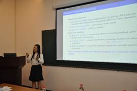 联合研讨会期间,双方青年学者及博士生分享了他们最新的研究工作,并就共同感兴趣的问题进行了热烈的讨论与交流。香港中文大学统计系师生的报告主要围绕概率极限理论、高维统计推断以及生物统计学三个方面,探讨了局部统计量的和的渐近分布以及中偏差理论等,还涉及高维变量选择、大数据聚类和贝叶斯分位数回归分析等高维统计推断方法,并介绍了生物基因学中的统计分析研究中的新进展,展示了统计理论在交叉领域中的应用。我院师生代表也就会议主题给出了关于机器学习、压缩感知等方面的报告,介绍了机器学习领域中的最新研究成果,探讨了其涉及的统计研究方法。