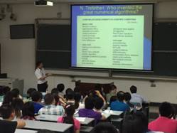 袁亚湘院士举用在剑桥大学求学期间跟随导师爬山的例子引入“瞎子爬山问题”,随后形象地说明计算机与瞎子在一定程度上具有相似性。从“最速下降法”开始,进一步介绍梯度法、共轭梯度法、拟牛顿方法等几种经典的常用优化方法,并列举了大量生动形象的例子,使同学们对这些理论与方法有了更为直观的认识。报告还简要介绍线性规划的单纯形法、内点法的基本思想,也扼要介绍当前国际上十分热门若干优化问题,如压缩感知中的稀疏优化问题和在经济等领域有着广泛应用的低秩矩阵优化问题。在提问环节中,袁院士还针对现场师生提出的不同问题进行了认真地解答,与同学们分享了他对数学问题与实际生活的辩证思考,最后,袁院士用“优化自己的人生”祝福大家有更灿烂的明天。