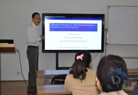 应必赢集团网站邀请,中山大学数理金融工程领域著名青年学者朱书尚副教授来数学学院访问,11月8日上午为数学试验班同学做了题为“Portfolio Management with Dual Robustness in Prediction and Optimization:A Mixture Model Based Learning Approach ”(在预测与优化两方面均具有稳健性的投资组合管理:一个基于混合模型的学习方法)的学术报告。数学学院副院长陈志平教授、管理学院郭菊娥教授、学院青年教师及部分硕士、博士研究生听取了报告,讲座由陈志平教授主持。