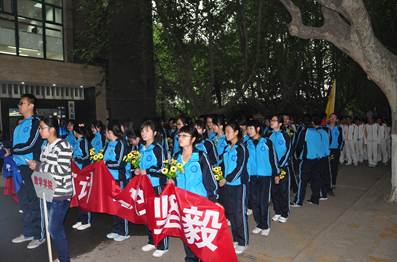 2013年4月19日,西安交通大学第51届运动会盛大开幕。尽管当天刮着凉风,下着雨,八点半运动会照常召开。一如往年,首先开始的是各书院,研究生院,学校各组织的代表方阵,他们穿着统一的服装,迈着整齐的步伐,在一声声嘹亮的口号中,走过主席台,接受校领导的检阅。我院院长彭济根老师、党委副书记易媛老师、院工会主席张永怀老师及学子代表队不畏风雨,身着蓝色的衣服,手中挥舞着象征顽强的太阳花,铿锵有力地喊着“明德明智,实事求是,青春如火,超越自我,非比寻常,数学最强”的口号,迈着矫健的步伐,昂首挺胸,自信满满地走过主席台,那一刻,天不再阴冷,同学们激情澎湃,展现出我数学人的朝气蓬勃与精神风采。我院健儿团结拼搏、锐意进取,经过两天的激烈角逐,取得辉煌成绩,具体战果如下: