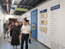 郑庆华副校长一行首先查看了已建成的研究平台使用情况和文化建设推进情况。基础数学研究所、华为-西安交大GTS创新实验室的研究生工位、教师办公室、会议室已投入使用。新建成的文化墙图文并茂地展示了学院、研究院各中心(所)的历史沿革、中心定位、代表性成果等内容,凸显了学院和研究院的发展历程及辉煌成就。
