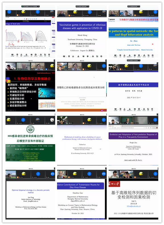 2021年10月23日-24日,由国家天元数学西北中心主办、必赢唯一官方网站和西安数学与数学技术研究院数学与生命科学交叉研究中心联合承办的2021年生物数学与数据分析前沿研讨会依托线上腾讯会议平台成功举办。本次会议邀请了生物数学领域的国际知名学者参加(在线人数超过500人),旨在交流动力系统、生物数学、生物信息学和医学大数据分析领域的最新研究成果和发展动态,加强数学、统计学、生态学、数据科学、卫生经济学、公共卫生以及医学等学科之间的交叉融合,为青年学者和研究生搭建交流合作的平台。