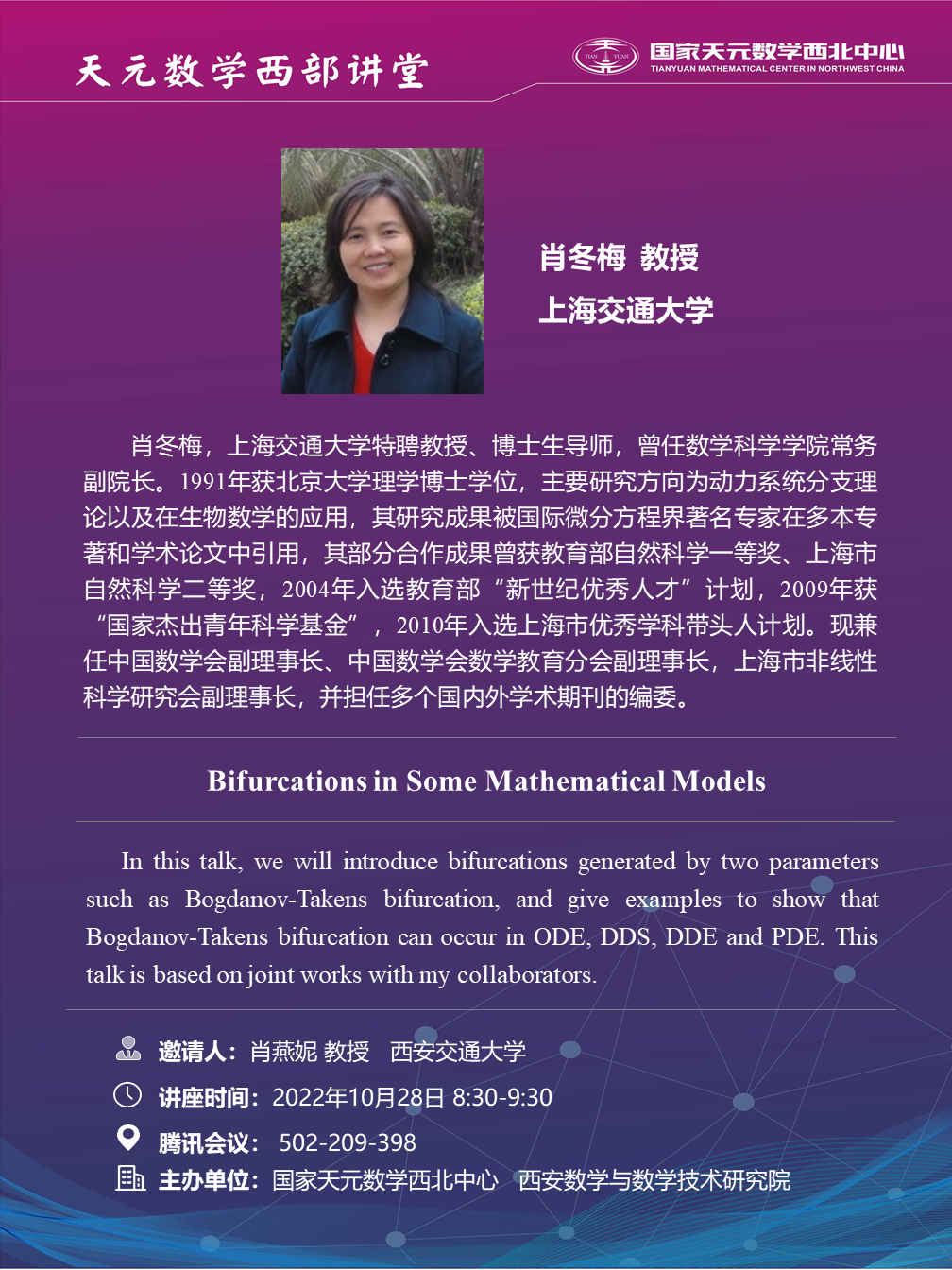 【天元数学西部讲堂】上海交通大学肖冬梅教授报告通知