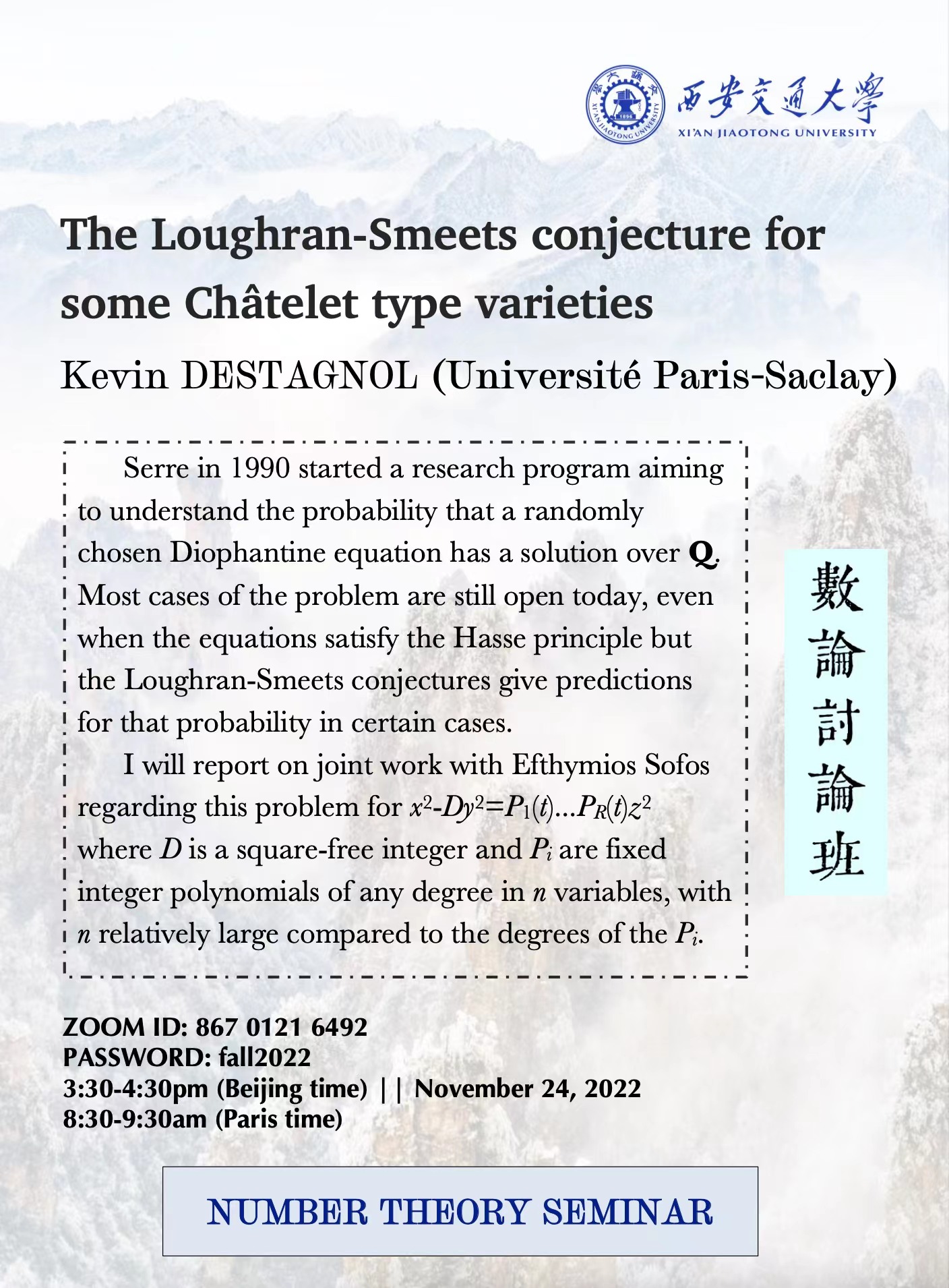 【数论讨论班】巴黎萨克雷大学Kevin Destagnol(2022.11.24)