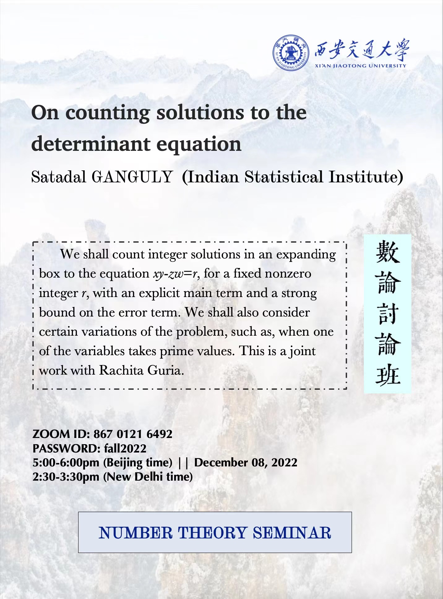 【数论讨论班】印度统计研究所Satadal Ganguly(2022.12.08)