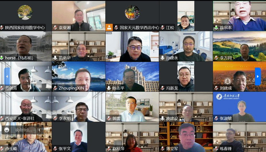 2023年1月16日,国家天元数学西北中心、陕西国家应用数学中心成功举办2022年度联合学术委员会会议。会议以线上形式召开,联合学术委员会主任马志明院士,副主任郭雷院士、袁亚湘院士、徐宗本院士,委员江松院士、张平文院士、范剑青院士、国家自然科学基金委委员会数理学部数学科学处处长赵桂萍研究员等19位专家参加会议,西部共建高校代表十余人应邀参会。会议由马志明院士主持。