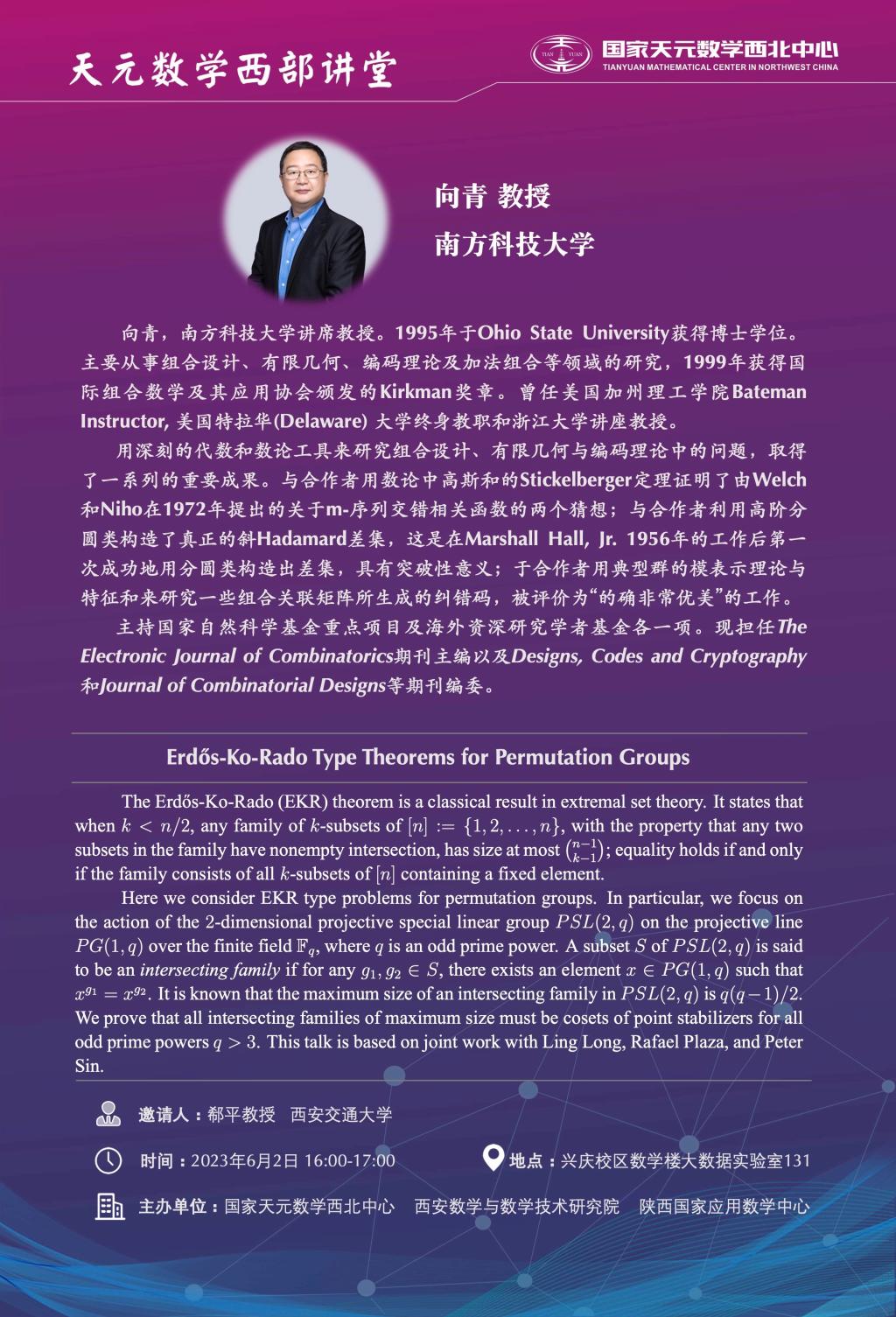 【天元数学西部讲堂】南方科技大学向青教授学术报告