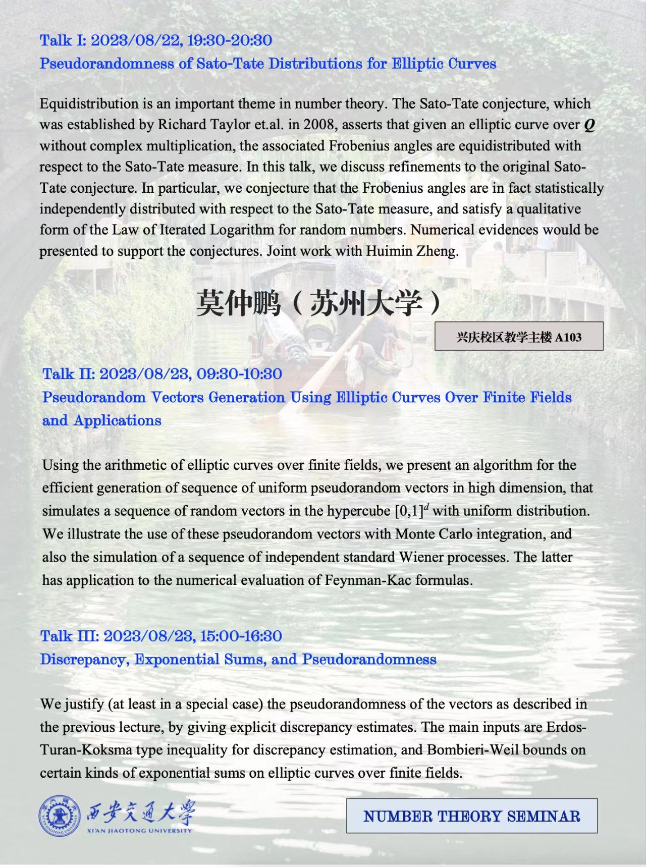 【数论讨论班】 苏州大学莫仲鹏(2023.08.22&23)
