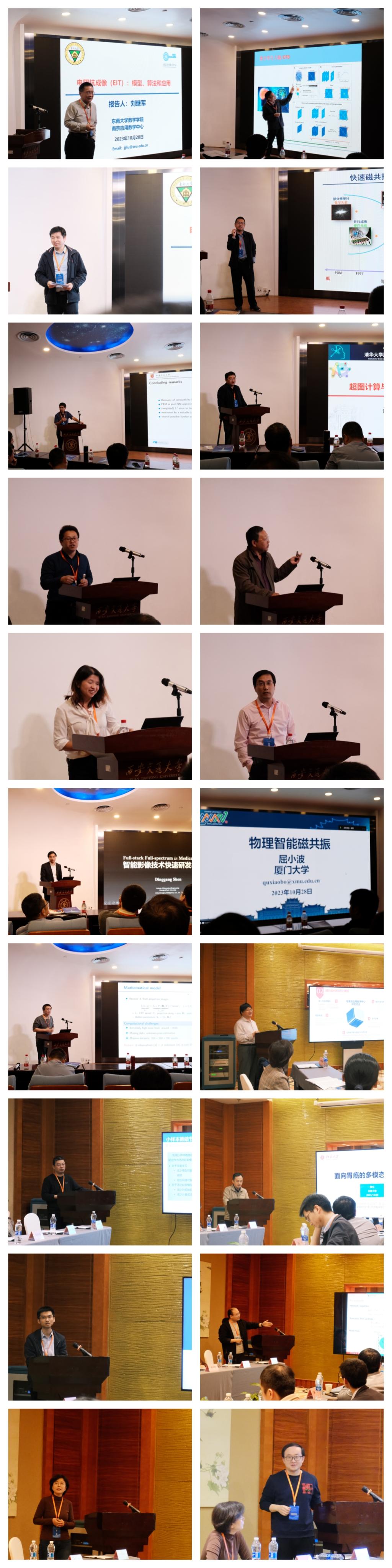 会议由西安交通大学曾薇教授和与会专家共同主持。会议期间,与会专家聚焦医学成像与影像分析的数学理论与方法,讨论其在MR/CT/多模态医学成像与影像分析领域的应用,以促进数学反问题、人工智能、机器学习、物理成像等理论方法与医学影像应用间的交叉与融合。会议邀请了20位数学与医学影像领域的专家依次展开讲座报告:东南大学刘继军教授、电子科技大学尧德忠教授、电子科技大学李纯明教授、中科院深圳先进研究院梁栋研究员、香港中文大学金邦梯教授、清华大学高跃副教授、中科院数学与系统科学研究院陈冲副研究员、上海交通大学王利生教授、上海交通大学张小群教授、上海大学应时辉教授、上海科技大学沈定刚教授(联影智能联席CEO)、厦门大学屈小波教授(线上)、清华大学包承龙助理教授、中山大学姚正安教授、河南大学庞志峰教授、北京大学张立研究员、之江实验室林宏翔副研究员、西安交通大学贾骏雄教授、西安交通大学乔琛教授,以及西安交通大学杨鹤然助理教授。