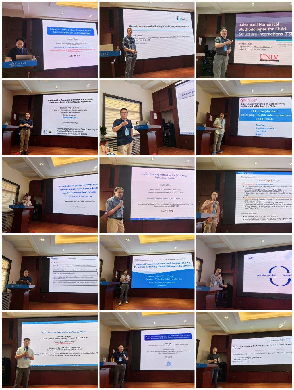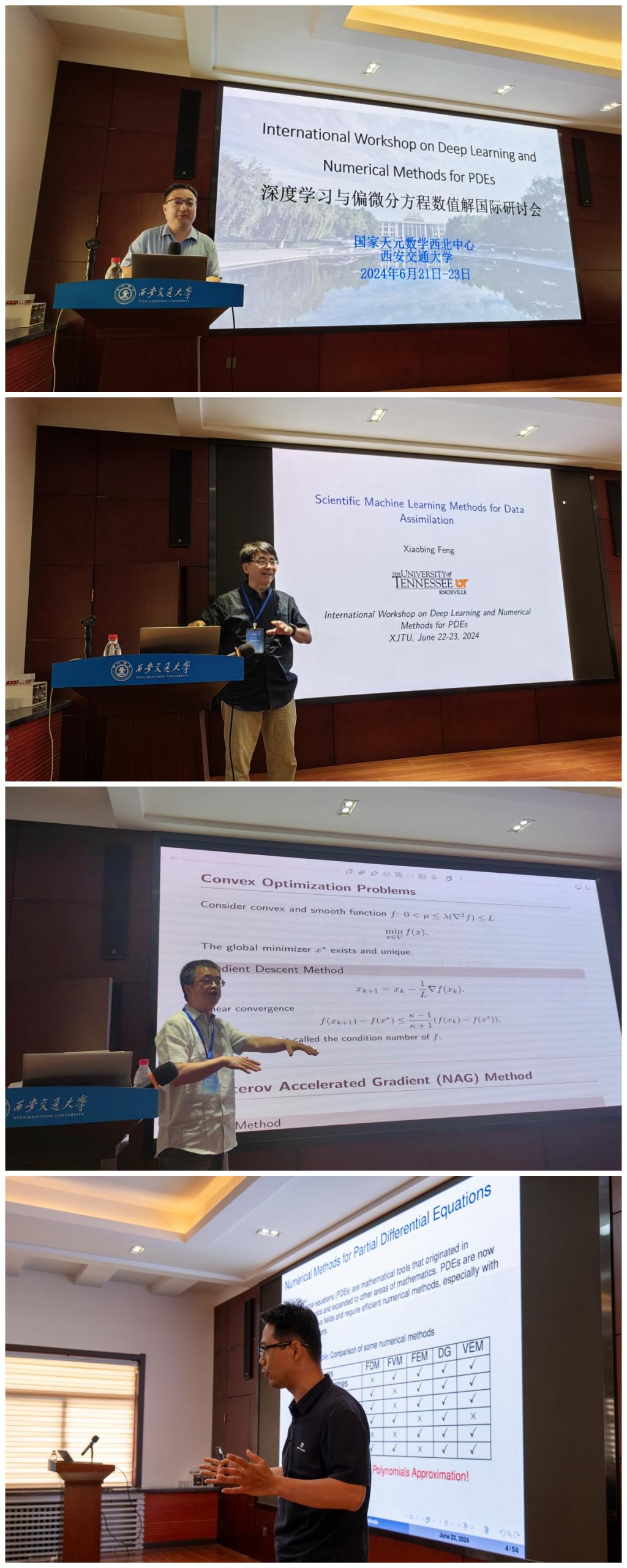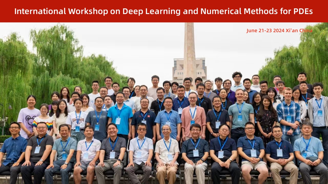 6月21日至23日,国家天元数学西北中心成功举办了“深度学习与偏微分方程数值解”国际研讨会(International Workshop on Deep Learning and Numerical Methods for PDEs)。会议聚焦于深度学习与偏微分方程数值方法的交叉与融合,以及其在科学与工程中的应用,由加州大学尔湾分校的陈龙教授、西安交通大学的王飞教授和王治国教授共同组织召集。研讨会邀请了18位在本领域做出突出研究成果的专家学者作学术报告。来自美国加州大学尔湾分校、田纳西大学、普渡大学、南卡罗来纳大学、内华达大学拉斯维加斯分校、德克萨斯州立大学、摩根州立大学、德国马克斯-普朗克等离子物理研究所、荷兰代尔夫特理工大学、沙特阿拉伯阿卜杜拉国王科技大学、香港中文大学、中科院、上海交通大学、西安交通大学、西北工业大学、吉林大学、中国核动力研究设计院、西北核技术研究院等30多个单位的近100名代表参会。