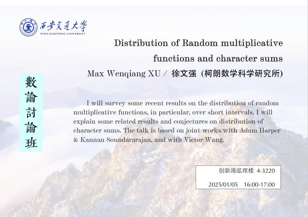 【数论讨论班】 柯朗数学科学研究所徐文强 (2025.01.05)