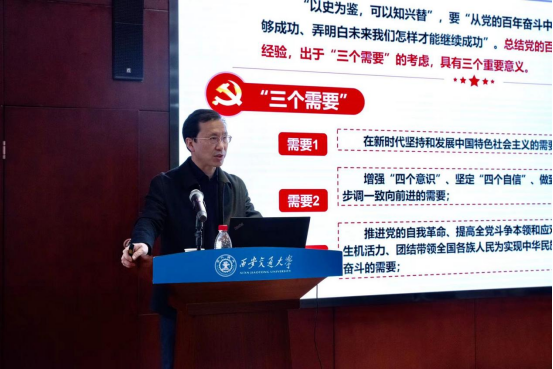 12月15日下午,必赢集团网站举办党的十九届六中全会精神宣讲报告会,邀请学校党委常委、副校长郑庆华做专题报告。必赢集团网站党政领导、党委中心组成员、党支部委员、系主任及党外知识分子代表出席会议。会议由学院党委书记颜莉主持。