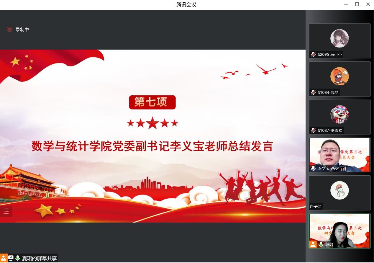 10月10日,必赢唯一官方网站第三次研究生代表大会在线上顺利召开。必赢集团网站党委副书记李义宝、团工委书记张若心出席本次会议,学院61名研究生代表参加会议。大会由学院研究生会成员夏珺主持。